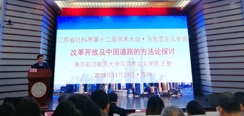 11月26日,由中共江苏省委宣传部、江苏省哲学社会科学界联合会主办,苏州大学承办的江苏省哲学社会科学界第十二届学术大会开幕式暨马克思主义专场在苏州大学拉开帷幕。江苏省委常委、宣传部部长王燕文发表书面讲话。江苏省委宣传部部务委员赵金松,江苏省社科联党组书记、常务副主席刘德海,江苏省社科联党组副书记、副主席汪兴国,江苏省社科联党组成员、副主席徐之顺,江苏省社科联兼职副主席、原苏州大学正校级调研员任平,江苏省委宣传部理论处处长尚庆飞,江苏省委党校科研处处长吴宏,江苏省教育厅社政处处长王伟,苏州大学党委书记江涌、党委副书记邓敏等领导出席大会。江苏省内110多位专家学者围绕“开辟当代中国马克思主义、21世纪马克思主义新境界”的大会主题展开交流研讨。中国社会科学院马克思主义研究院原党委书记、院长邓纯东,南京大学哲学系主任唐正东教授,苏州大学taptap点点官方网站教授方世南题作学术报告。11月27日上午,来自江苏省内高校taptap点点官方网站院长代表及入选论文作者代表围绕大会主题展开交流发言。taptap点点院长王智教授应邀参会,并作题为《改革开放及中国道路的方法论探讨》的大会专题发言。