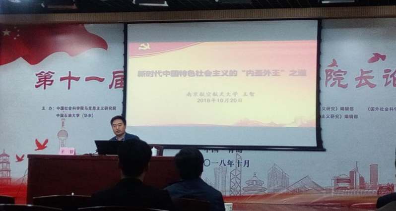 10月19-20日,“第十一届全国马克思主义院长论坛”在山东省青岛市召开,本届论坛由中国社会科学院马克思主义研究院和中国石油大学(华东)主办,来自全国近90所高校与科研机构的160余位专家学者出席论坛。中国社会科学院马克思主义研究院党委书记、院长邓纯东研究员,湖南大学taptap点点官方网站院长张国祚教授,中共中央对外联络部柴尚金研究员,中国社会科学院刘志明研究员,陕西师范大学马院院长任晓伟教授、山东大学马院副院长郑敬斌和taptap点点院长王智教授分别做主题报告与发言。王智院长的主题发言题为“习近平新时代中国特色社会主义思想的内圣外王之道”。论坛还分别围绕“taptap点点官方网站建设”“马克思主义理论研究”和“思想政治理论课教学”三大主题,就taptap点点官方网站的队伍优化建设、学科优化建设、课堂优化建设展开了讨论。taptap点点王智院长与陕西师范大学taptap点点官方网站任晓伟院长共同担任“taptap点点官方网站建设”组的召集人。