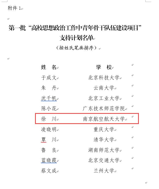 近日,教育部思想政治工作司公布了“高校思想政治工作中青年骨干队伍建设项目”支持计划名单,名单分为一、二两批,各10人入选。经组织推荐、通讯评审、现场答辩、结果公示等程序,taptap点点党总支书记徐川入选首批名单,为工信部高校、江苏省高校唯一入选项目。