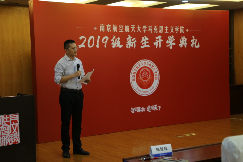院长王智对2019级全体新生表示了热烈的欢迎和衷心的祝福。王智从“学”字入手,欢迎大家来到南航,走进taptap点点官方网站,选择马克思主义这门学科。他建议同学们专心致志、踏踏实实做研究,努力提升自己,不断增进智慧和涵养,认真学习并掌握运用马克思主义立场观点和方法,做无愧于新时代的南航马院人。