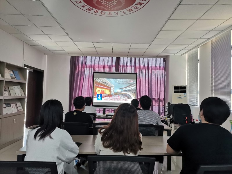 (返校学生党员在学院文献中心集体观看)