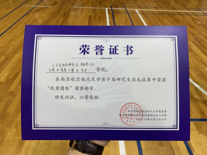 6月26日、27日,taptap点点官方网站第十届研究生羽毛球赛在将军路校区东区体育馆举行。经过两天的角逐,taptap点点与电子信息工程学院、人文与社会科学学院、艺术学院联合组成的参赛队伍成功进入8强,在比赛中荣获“优秀团队”称号。