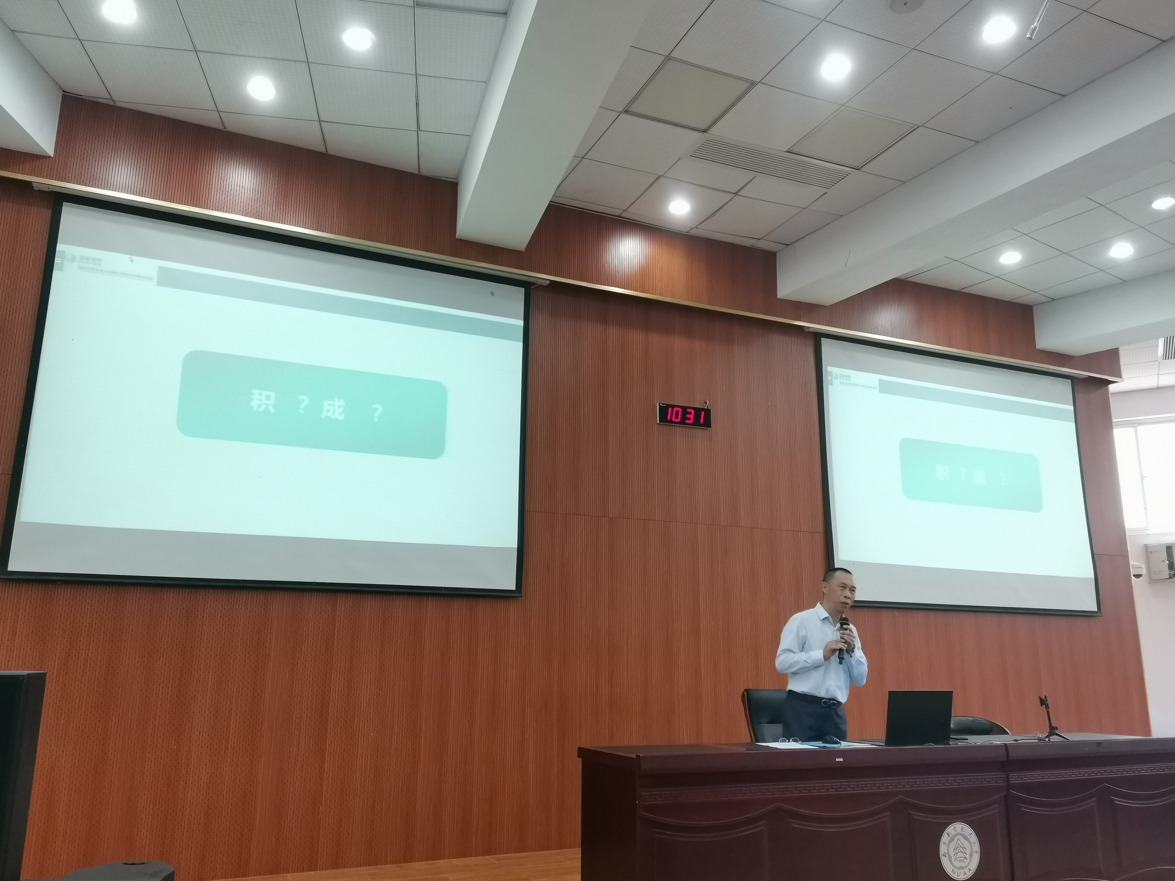课堂上,朱洪斌用“积微成著”开启了大家对成功的思考。他从自己的成长经历出发,娓娓道来,启迪青年学生只要对工作永不满足、对信念永不放弃、对专业日积月累,终能获得一番成就、现实自我价值。朱老师生动讲解了他在工作中不断寻找自我、成长成才的故事。比如,历时25年解决一个重要问题、历经4年科研攻关仍告失败而不气馁、因风寒感冒时服用双黄连口服液获得新灵感从而研发成功,等等。他不断积累学习、不满现状、永不放弃,终于发明了行业内一个重要的检测方法,最终站上国家科技进步奖颁奖台,并获得国家科技技工奖。通过信手拈来的切身故事和体会,朱老师证明了:困难是创新的原动力,一次次的挫折将会为下一次的成功研发奠定基础。