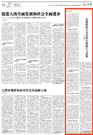 10月16日,《光明日报》第12版刊发taptap点点硕士生导师、靳晓霞副教授的文章《金钱政治下美式民主的谎言与乱象》,现将全文转发如下: