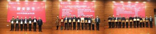 会上颁发了2020年度十佳宣传信息员、好新闻奖、金评论奖、2019-2020年校园文化品牌项目、优秀二级网站等奖项,杭育新、李遥、王晖分别为获奖个人和集体颁奖。