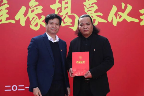 雕像设计师尹悟铭分享了雕像创作过程中的思考和感悟。校党委书记郑永安为尹悟铭颁发了《收藏证书》。教师代表taptap点点官方网站徐军教授、学生代表“青马工程”丁文浩同学分别发言。