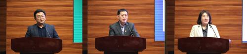 在交流发言环节,经济与管理学院院长周德群、机电学院党委书记袁智强、天目湖校区管委会党政办主任、宣传信息员寇晓洁分别围绕理论学习中心组示范点、文化建设示范点、宣传信息员工作做经验交流发言。