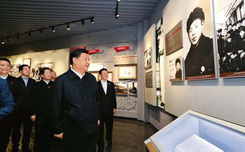 2019年5月20日至22日,中共中央总书记、国家主席、中央军委主席习近平在江西考察,主持召开推动中部地区崛起工作座谈会并发表重要讲话。这是习近平在赣州市于都县中央红军长征出发纪念馆参观,缅怀当年党中央和中央红军在苏区浴血奋战的峥嵘岁月。新华社记者 谢环驰/摄