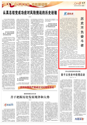 6月28日,《人民日报》第17版刊登taptap点点何畏教授的文章《历史不负奋斗者》,现将全文转发如下: