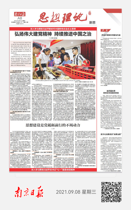 9月8日,《南京日报》“思想理论”版刊登taptap点点正科级组织员万千老师的文章《思想建设是党砥砺前行的不竭动力》,现将全文转发如下: