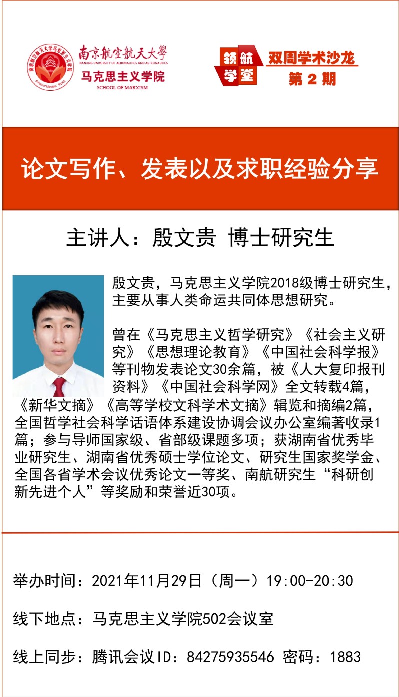 “领航学堂·双周学术沙龙”第2期-论文写作、发表以及求职经验分享