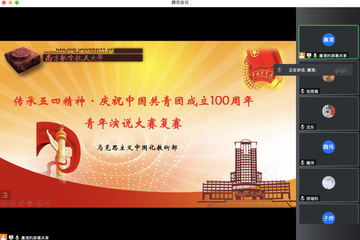 为更好地将教学与实践相结合, taptap点点官方网站中国化教研部连续5年举办特色实践活动——“青年演说大赛”。五四将至,今年的“青年演说大赛”以传承五四精神、庆祝中国共青团成立100周年为主题,各“概论”课班级的同学踊跃参加,精心准备了各类节目。经过前期初赛选拔,4月25日,马克思主义中国化教研部通过线上形式开展了今年“青年演说大赛”的决赛选拔工作。教研部主任廉清主持选拔工作,各节目指导教师均参与评审,节目以视频形式展示,共计18个精彩节目最终入围决赛。