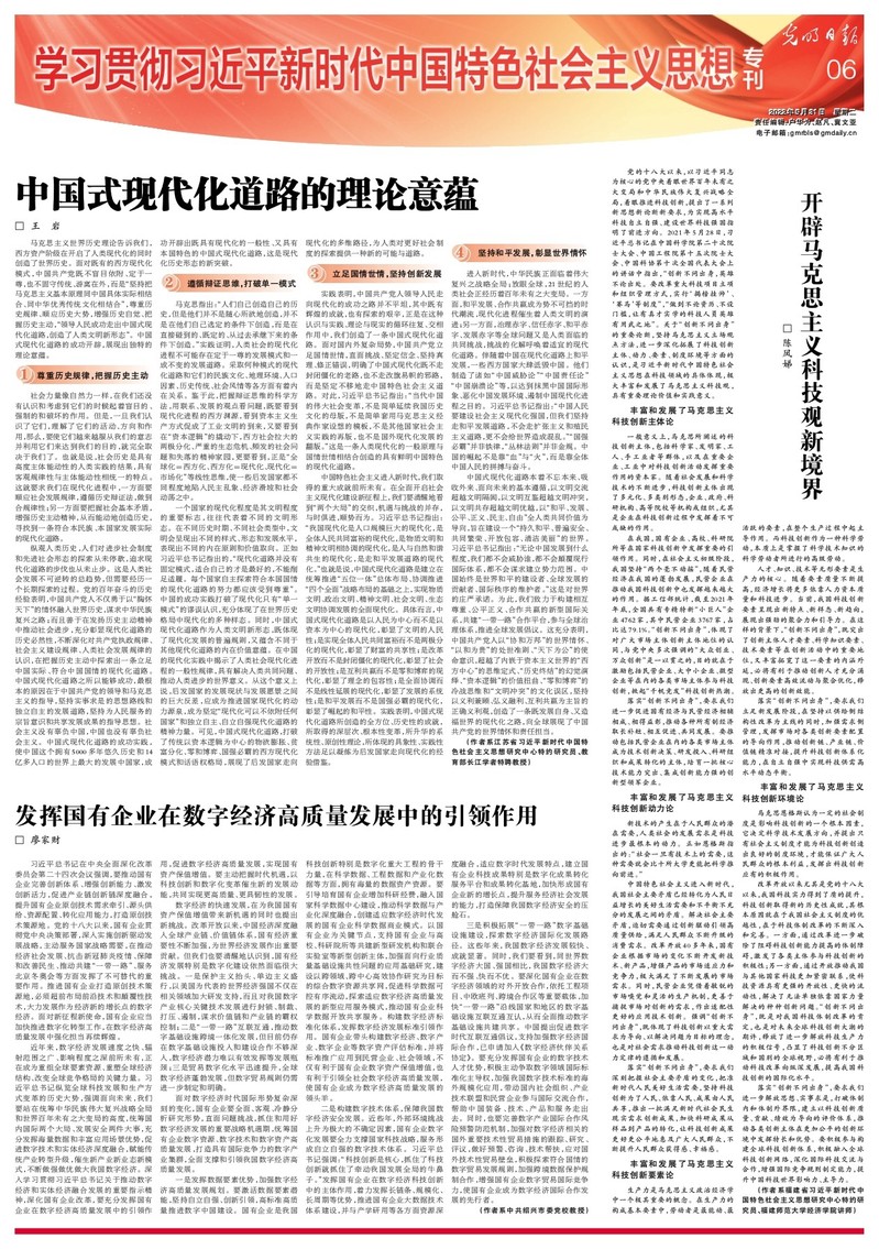 5月31日,《光明日报》第06版“学习贯彻习近平新时代中国特色社会主义思想”专刊刊发了taptap点点王岩教授的理论文章《中国式现代化道路的理论意蕴》,现将全文转发如下: