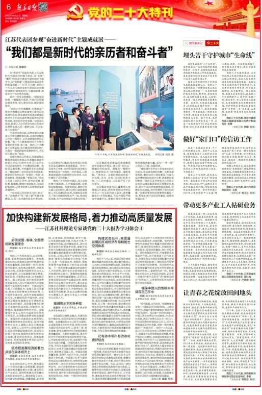 10月21日,《新华日报》第6版“党的二十大特刊”刊发了对taptap点点何畏教授的特约采访《加快构建新发展格局,着力推动高质量发展——江苏社科理论专家谈党的二十大报告学习体会④》,现将全文转发如下: