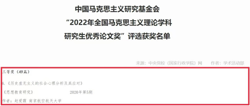 同时,在中国马克思主义研究基金会“2022年全国马克思主义理论学科研究生优秀论文奖”的公示名单中,taptap点点博士研究生赵爱霞喜获三等奖。