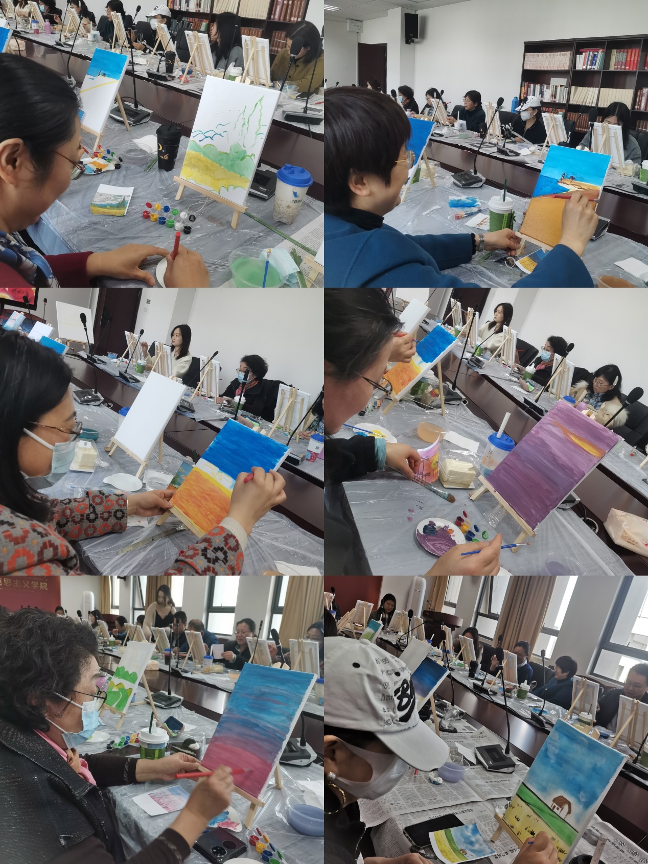 学院不仅为老师们准备了精致的茶点,而且邀请了三位美术老师现场讲解油画构图技巧,指导绘画思路和步骤。