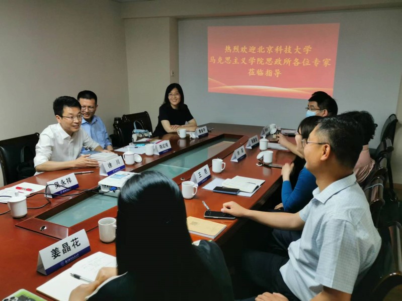近日,北京科技大学taptap点点官方网站思想政治教育研究所党支部书记王艳一行来taptap点点调研交流。院党委书记徐川、副院长陈红桂出席调研活动,思想道德与法治教研部党支部书记吴永祥、教研部主任董金平参加活动。