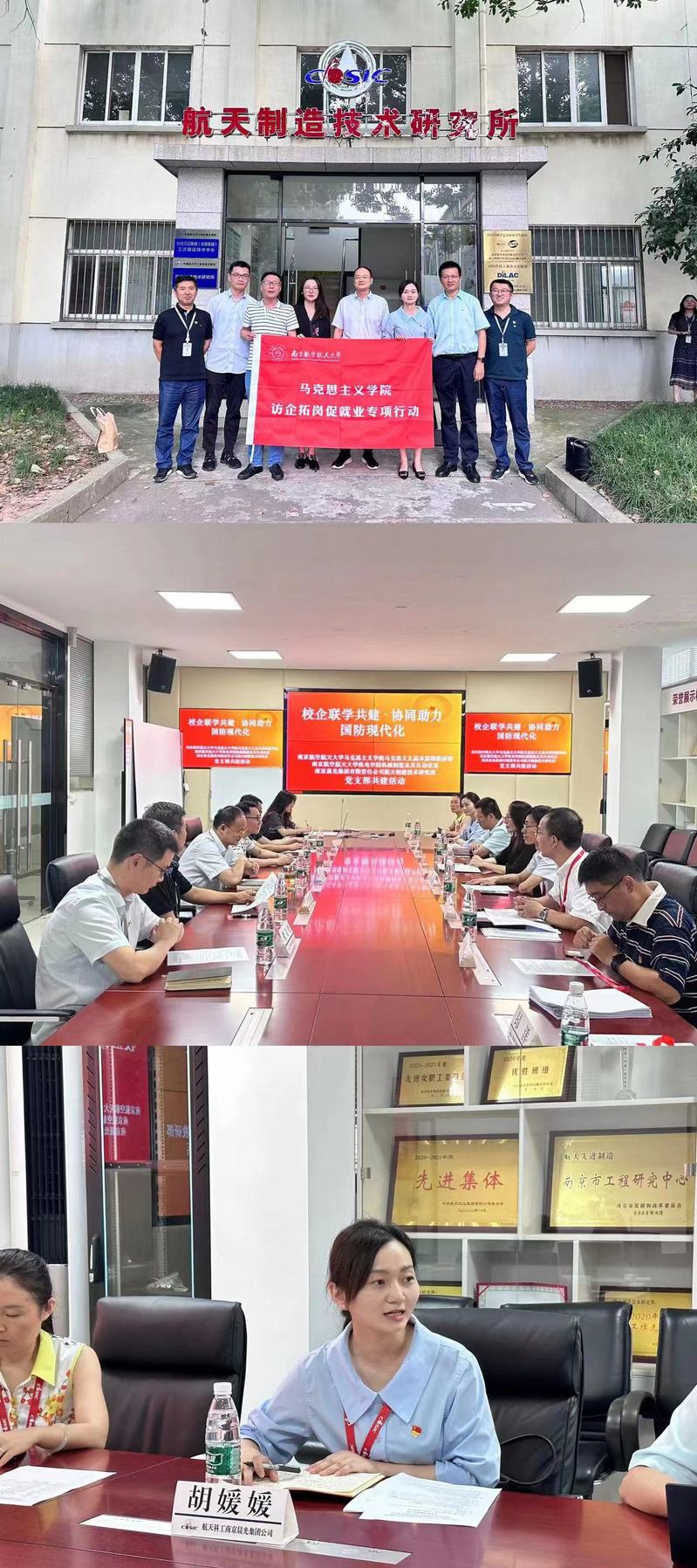 8月11日,taptap点点官方网站师生走进南京晨光集团开展“访企拓岗促就业”专项行动,围绕研究生就业专题进行调研。机电学院机械制造及其自动化系党支部、taptap点点官方网站马克思主义基本原理教研部党支部和南京晨光集团公司航天制造技术研究所党支部共同开展支部共建活动。晨光集团公司总工艺师胡伟叶、晨光集团公司航天制造技术研究所党支部书记宛静、机电学院党委书记刘虎、taptap点点官方网站党委副书记阙愚、taptap点点官方网站副院长陈红桂等出席活动。