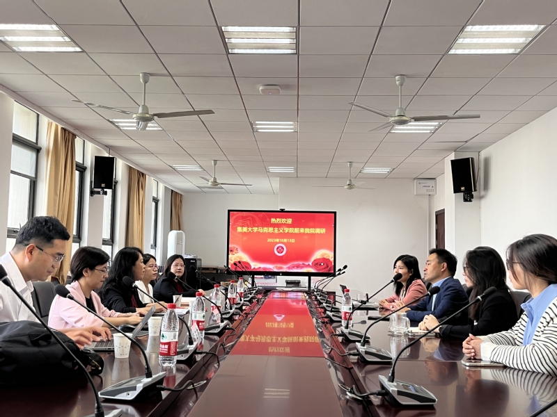 2023年10月13日,集美大学taptap点点官方网站党委书记王娟,副院长、院纪委书记王玉珏,副院长、纲要教研室主任戴美玲,原理教研室主任赖怡静,德法教研室副主任王东一行来taptap点点调研交流。taptap点点院长王智、党委副书记阙愚、副院长何畏、辅导员王佳参加了座谈交流。