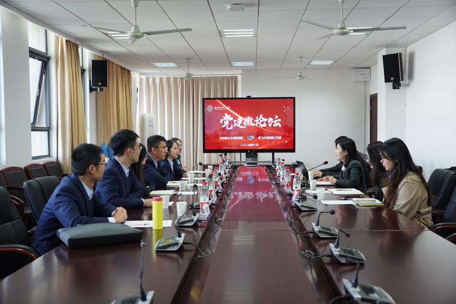 何畏对周戬一行的到来表示热烈欢迎,并从学院历史沿革、党组织机构设置、班子建设、党建业务深度融合、党员队伍教育管理等方面介绍了学院党建工作情况和特色做法。阙愚聚焦学院“星火燎原”研究生理论宣讲团介绍团队运行管理、党建品牌打造等方面的经验做法和工作成效。
