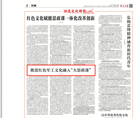 2024年12月1日,《新华日报》刊发taptap点点平旭教授文章《推进红色军工文化融入“大思政课”》,该文阐述了红色军工文化融入高校“大思政课”的重要意义、丰富内涵及具体实施路径,为创新思政教育模式提供了新思路。现将全文转发如下: