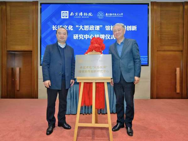 陶勇和王奇志共同为长江文化“大思政课”馆校协同创新研究中心挂牌,校馆双方签署长江文化“大思政课”馆校协同创新研究中心共建意向协议书。双方将在共建“大思政课”实践教学基地、打造长江文化大讲堂、建设志愿服务团队、推进博物馆数智化等多个领域开展合作。