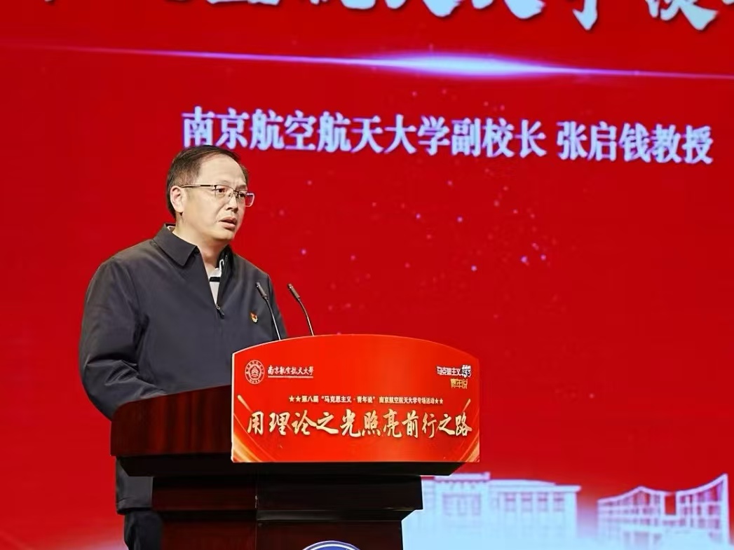 张启钱在致辞中表示,“航空报国、航空强国”已成为南航青年最鲜明的精神特质和文化标识,希望广大南航青年以本次“马克思主义·青年说”活动为契机,始终把牢青春航向、厚植青春底色、激扬青春力量,为强国建设、民族复兴伟业贡献更大青春智慧和青春力量。