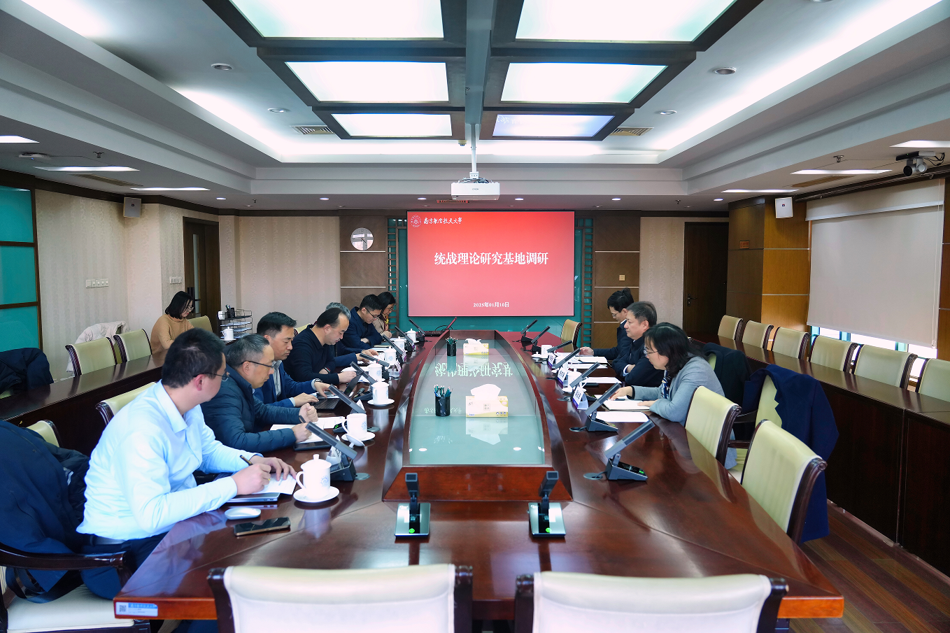 1月10日下午,省委统战部副部长徐东海来校调研江苏省统一战线理论研究taptap点点官方网站基地(省统一战线理论研究院)建设工作。基地主任、校党委副书记陶勇同志出席调研座谈会。座谈会由校党委常委、党委组织部/统战部部长李遥主持。